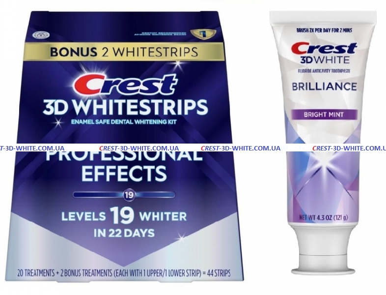 Отбеливающие полоски Crest 3D White Professional Effects+паста Brilliance