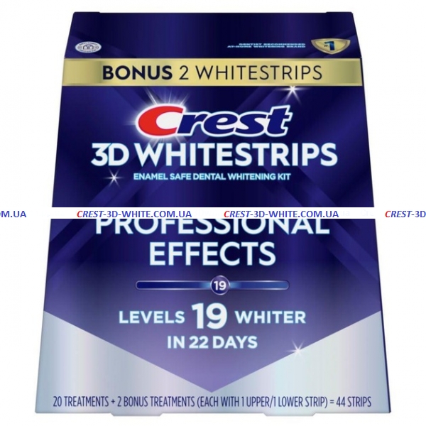 Crest 3D White Whitestrips Professional Effects - для тех кто хочет добиться наилучшего результата! Эти полоски абсолютно безопасны для здоровья и эмали зубов. Отбеливающие полоски Professional Effects изготовлены по новой революционной технологии "Advanced Seal No Slip", которая помогает им лучше держаться на зубах и не соскальзывать. Новые улучшенные полоски для нижних зубов, которые позволяют охватить больше поверхности для отбеливания. Применяйте полоски Professional Effects один раз в день по 30 минут и Вы заметите первый результат уже через 3 дня, а через 20 дней после применения полосок Ваша улыбка обретет первозданную белизну и будет радовать Вас и всех окружающих ещё очень долгое время. Результат после использования этих отбеливающих полосок равносилен отбеливанию зубов у стоматолога и при этом отбеливающий эффект сохраняется намного дольше.