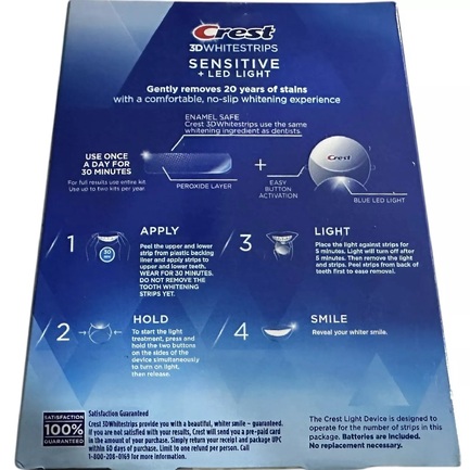 Полоски Crest 3D Whitestrips Sensitive был специально разработан для зубов чувствительных к отбеливанию. Он способен за короткое время сделать Вашу улыбку белоснежной, при этом не доставляя Вам ни малейшего дискомфорта. С его помощью Вы сможете избавиться от поверхностных пятен и защитить эмаль от повторного появления налёта. Отбеливающие полоски Sensitive прочно фиксируются на поверхности зубов и не соскальзывают во время их использования. Это позволяет проводить процедуру, не отвлекаясь от повседневных дел. Во время отбеливания Вы можете разговаривать и пить воду. В их составе содержатся натуральные компоненты, обеспечивающие деликатный уход за полостью рта. Отбеливающие полоски Crest 3D Whitestrips Sensitive успешно прошли все необходимые исследования, в ходе которых была доказана их эффективность и безопасность, и продемонстрировали превосходные результаты в отбеливании чувствительных зубов. Чтобы обеспечить получение безупречного результата, необходимо использовать полоски по 30 минут каждый день. Представленный набор рассчитан на 14 процедур и включает в себя 28 отбеливающих полосок. После прохождения полного курса отбеливания зубы становятся на несколько тонов светлее. При этом первые результаты можно оценить уже после трёх процедур.